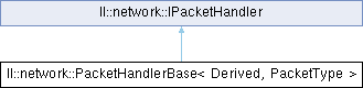 Inheritance diagram for ll::network::PacketHandlerBase< Derived, PacketType >: