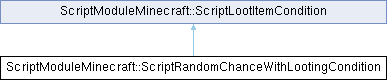 Inheritance diagram for ScriptModuleMinecraft::ScriptRandomChanceWithLootingCondition:Public Member Functions | |